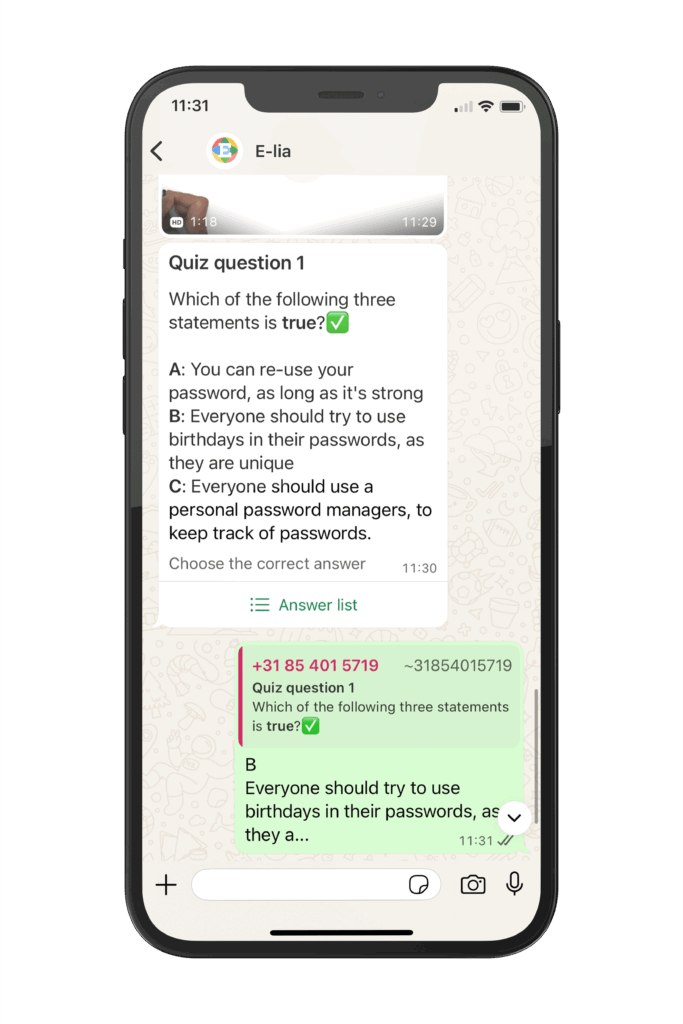 E-lia makes learning via WhatsApp simple, efficient, and measurable.